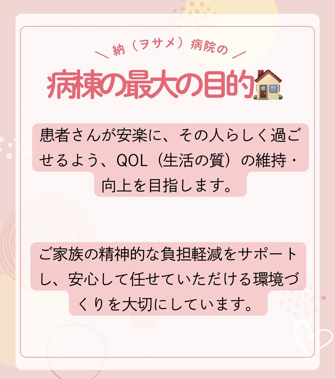 面会について:患者さまの療養環境を守るため、面会時間や人数を制限させていただく場合があります。ご理解ください。